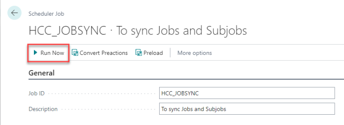 Scheduler Job: HCC_JOBSYNC. This job is responsible for pulling other scheduler jobs from HO in SaaS to the POS Master, that need to be run to pull the master/setup data. This should run automatically on the Task Scheduler after the installation, but if not, then run it manually from the Scheduler Job card: