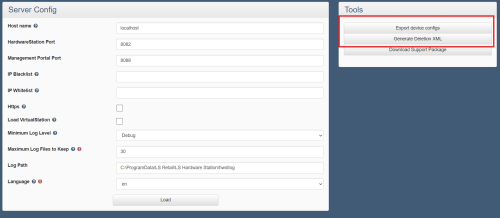 Until version 26, server and devices' configs were saved in XML files on C:\ProgramData\LS Retail\LS Hardware Station (default folder). Starting with version 27, those configurations are now stored in a single SQLite database file on /database subfolder.