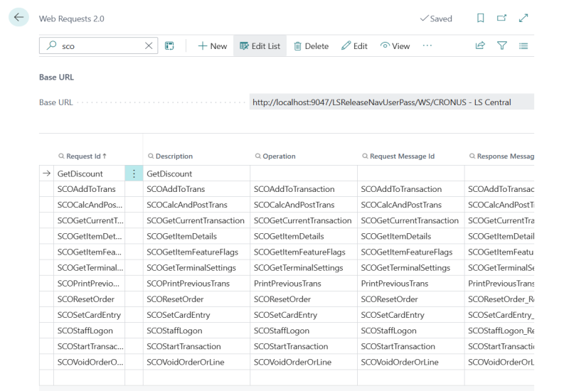 After setting up NavUserPassword, open the Web Service Setup page in Business Central. Under Web Requests 2.0, verify that all SCO-related web services are listed.