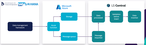The aim is to use a data management framework in the external ERP system to handle which data should flow from external ERP into LS Central. In cooperation with LS Central the flexibility allows the user to use their existing APIs to write the data into the Azure storage and skip the Azure function.