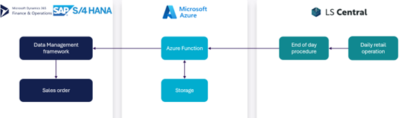 - The data is sent over to Azure functions once the end of day is triggered in LS Central.