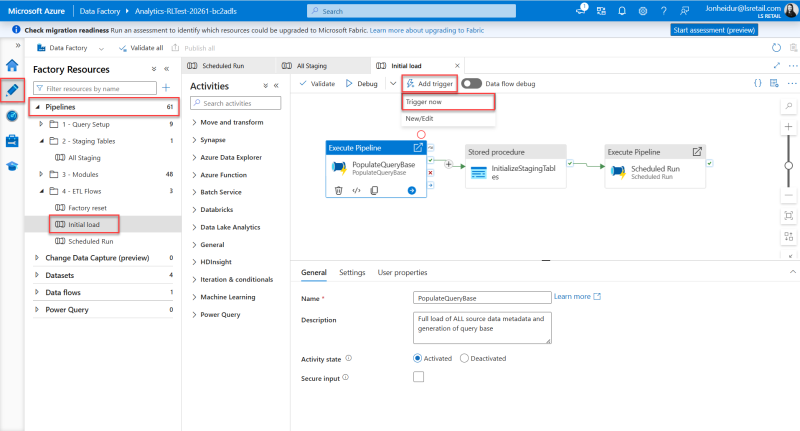 - Select the Initial load pipeline.