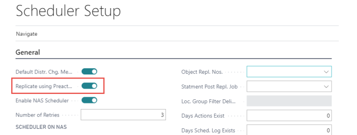 In the Scheduler Setup page, in the General FastTab, you must configure the following: