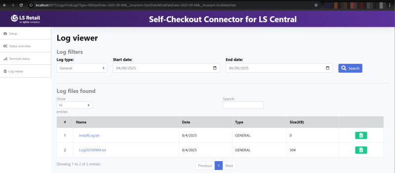- Filter by date or log type: General or Error.