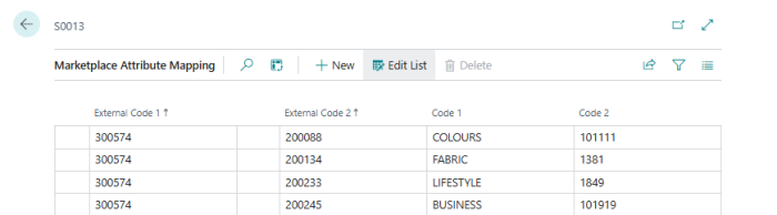 - External Code 1 represents the Shopee Category ID, and External Code 2 represents the Shopee Attribute ID selected from that category’s attribute list. These codes are then mapped to the corresponding Central attribute (for example, Fabric), where Code 1 stores the Central attribute name and Code 2 stores the default value for that attribute.