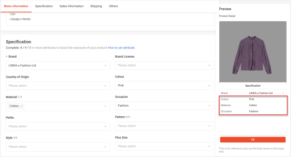 | Include Attribute in Item HTML | Central attributes are sent together with the Shopee item description. |