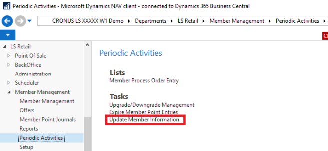 To process a sale from the POS so loyalty points will be calculated and the transaction will be displayed in the Sales Entry history, run Update Member Information in LS Central.