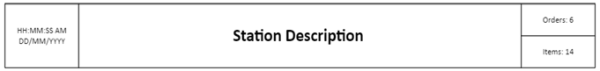 The Station Header Profile defines what information is displayed in the station's header, for example the name of the station and the time of day. The fields in the station header are organized in a grid similar to other Web KDS components.
